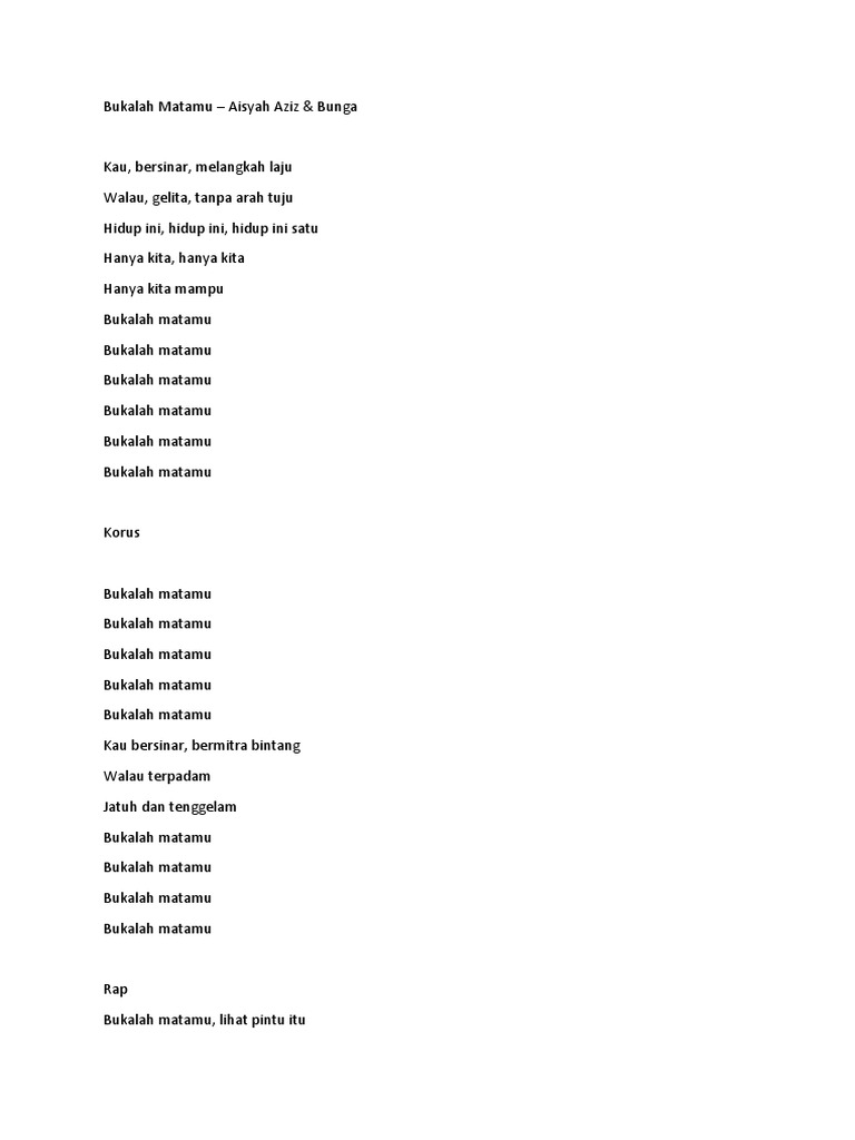 Lirik Lagu Bukalah Matamu Aisyah Aziz Bunga adalah seperti berikut. Watch popular content from the following creators. Aisyah Aziz Bunga OST Ejen Ali Lirik Bukalah Matamu OST Ejen Ali - Aisyah Aziz Bunga Lirik Bukalah Matamu OST Ejen Ali - Aisyah Aziz Bunga Lirik Bukalah Matamu OST Ejen Ali - Aisyah Aziz Bunga Kau bersinar melangkah laju Walau gelita tanpa arah tuju Hidup ini hidup ini.